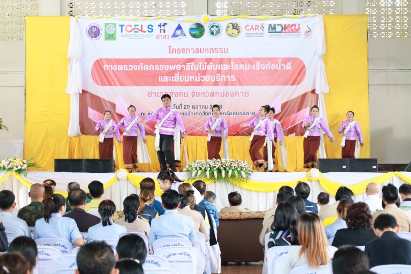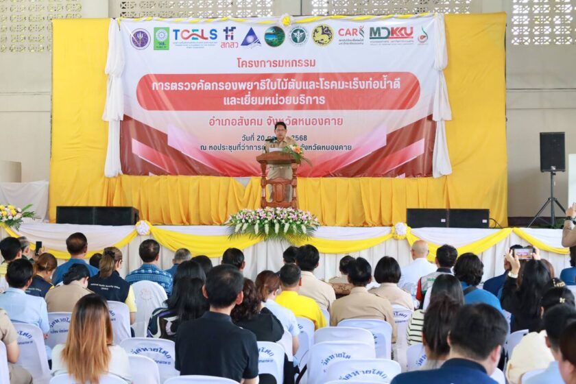 เมื่อวันที่ 21 ต.ค.2568 ที่ สำนักงานเทศบาลตำบลสังคม อำเภอสังคม จังหวัดหนองคาย นายสมภพ สมิตะสิริ ผู้ว่าราชการจังหวัดหนองคาย เป็นประธานเปิดงาน “มหกรรมการตรวจคัดกรองพยาธิใบไม้ตับและมะเร็งท่อน้ำดี” ภายใต้ โครงการวิจัยเชิงปฏิบัติการเพื่อแก้ไขปัญหาพยาธิใบไม้ตับและมะเร็งท่อน้ำดี ในพื้นที่เขตสุขภาพที่ 7, 8, 9 และ 10 พร้อมด้วย นพ.สุวิทย์ วิบุลผลประเสริฐ ประธานคณะกรรมการส่งเสริมเป้าหมายสำคัญตามยุทธศาสตร์วิทยาศาสตร์ วิจัยและนวัตกรรมฯ, นพ.ศุภกิจ ศิริลักษณ์ ผู้อำนวยการ สวรส., นพ.ภิเศก ลุมพิกานนท์, ดร.จิตติ์พร ธรรมจินดา ผู้อำนวยการ TCELS, และ นพ.ธงชัย กีรติหัตถยากร ผู้อำนวยการแผนงานพยาธิใบไม้ตับและมะเร็งท่อน้ำดี รวมทั้งผู้บริหารจากหน่วยงานต่าง ๆ เข้าร่วมอย่างพร้อมเพรียง