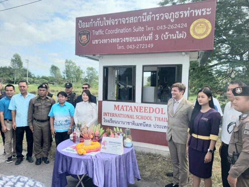 โรงเรียนนานาชาติเมทนีดล ประเทศไทย Mataneedol International School Thailand สร้างป้อมกำกับไฟจราจรกระทั่งกลายเป็นจุดอุ่นใจทั่วเมืองให้ชาวขอนแก่น ตำรวจจราจรปฏิบัติงานบนถนนอย่างปลอดภัยและผู้สัญจรไปมาได้เดินทางโดยมีไฟฟ้าสว่างไสวตามจุดสำคัญของเมืองขอนแก่น