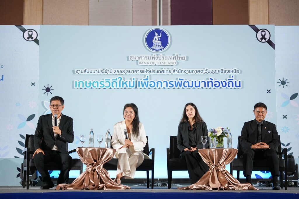 เมื่อวันที่ 21 พฤศจิกายน 2568 ที่ห้อง Convention 2–3 โรงแรมอวานี ขอนแก่น โฮเทล แอนด์ คอนเวนชั่น เซ็นเตอร์ จังหวัดขอนแก่น ธนาคารแห่งประเทศไทย สำนักงานภาคตะวันออกเฉียงเหนือ (ธปท. สภอ.) จัดสัมมนาประจำปี 2568 ภายใต้หัวข้อ “เกษตรวิถีใหม่เพื่อการพัฒนาท้องถิ่น” เพื่อเป็นเวทีแลกเปลี่ยนแนวคิดและประสบการณ์จากกลุ่มเกษตรกร ผู้ประกอบการ หน่วยงานรัฐ ภาควิชาการ สถาบันการเงิน และประชาชนทั่วไป ในการร่วมกันหาแนวทางเพิ่มรายได้และยกระดับคุณภาพชีวิตเกษตรกรอีสานให้ยั่งยืน โดยการสัมมนาแบ่งเป็น 4 ช่วงหลัก