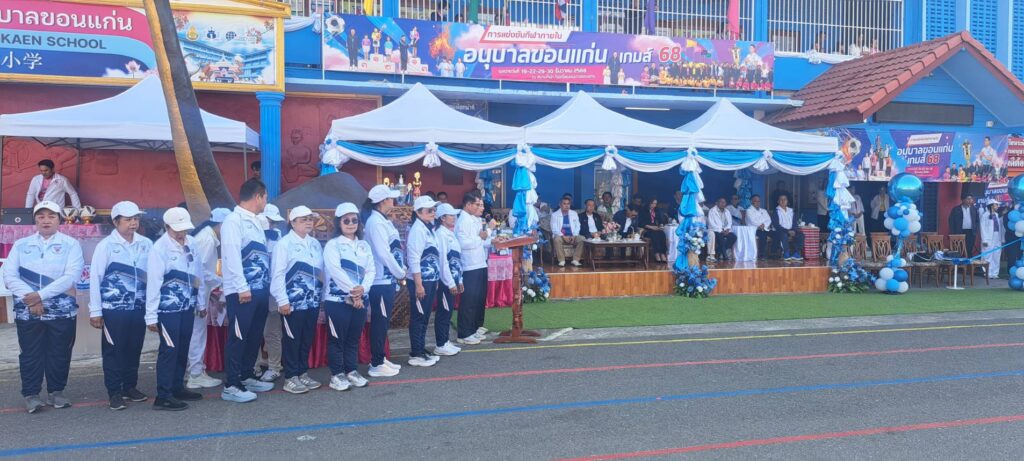 เมื่อเวลา 09.30 น.ที่ 30 เดือน ธันวาคม พ.ศ. 2568 ที่ สนามกีฬาโรงเรียนอนุบาลขอนแก่น  ดร.ศุภสิน ภูศรีโสม ผู้อำนวยการสำนักพัฒนาระบบบบริหารงานบุคคลและนิติการ สพฐ. เป็นประธานกล่าวเปิดงาน และให้โอวาท  โดยมี ดร.ประจวบ  ศิริภักดิ์ ผู้อำนวยการ(เชี่ยวชาญ)โรงเรียนอนุบาลขอนแก่น เป็นผู้กล่าวรายงาน พร้อมด้วย นายบุญเย็น โหว่สงคราม, นางประภาภรณ์ ภูขาว , น.ส.กมลวรรณ ทิพยเนตร รอง ผอ.สพป.ขอนแก่น เขต 1,นายบุญเหลือ ทองอ่อน ผู้อำนวยการ (เชี่ยวชาญ) โรงเรียนขอนแก่นวิทยายน,ดร.วัชระ คงแสนคำ ผู้อำนวยการโรงเรียนศรีกระนวนวิทยาคม,ดร.พรสมบัติ ศรีไสย ผู้อำนวยการ(เชี่ยวชาญ)โรงเรียนบ้านทุ่ม (ทุ่มประชานุเคราะห์)ดร.ยุทธศาสตร์ เพียรไธสง ผู้อำนวยการโรงเรียนคำแคนวิทยาคม ,บอร์ดบริหาร คณะครูและนักเรียน ร่วมงานเปิดอย่างคั่บคั่ง