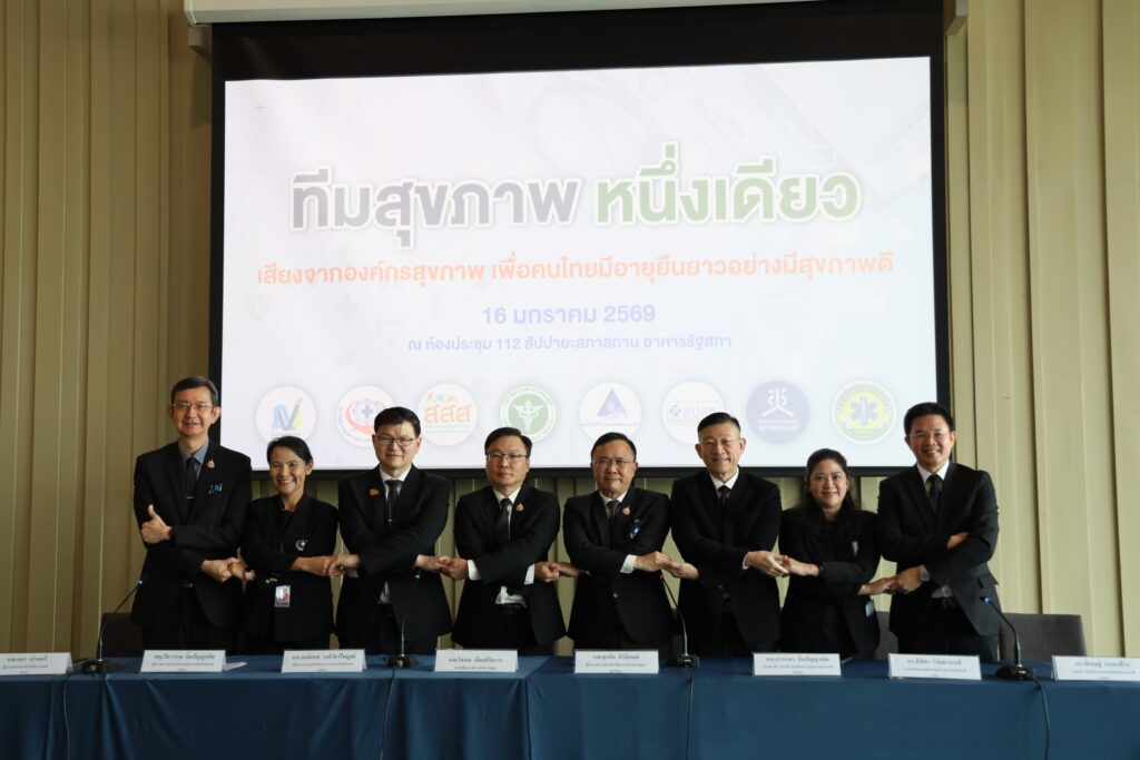 8 องค์กรสุขภาพระดับประเทศ ภายใต้ชื่อ “ทีมสุขภาพหนึ่งเดียว” ประกอบด้วย 1. กระทรวงสาธารณสุข (สธ.) 2. สถาบันวิจัยระบบสาธารณสุข (สวรส.) 3. สำนักงานคณะกรรมการสุขภาพแห่งชาติ (สช.) 4. สำนักงานกองทุนสนับสนุนการสร้างเสริมสุขภาพ (สสส.) 5. สำนักงานหลักประกันสุขภาพแห่งชาติ (สปสช.) 6. สถาบันการแพทย์ฉุกเฉิน (สพฉ.) 7. สถาบันรับรองคุณภาพสถานพยาบาล (องค์การมหาชน) (สรพ.) 8. สถาบันวัคซีนแห่งชาติ (องค์การมหาชน) (สวช.) ได้ร่วมกันจัดทำข้อเสนอนโยบายในการพัฒนาให้ประชาชนไทยมีอายุยืนยาวอย่างมีสุขภาพดี เสนอถึงผู้กำหนดนโยบาย พรรคการเมือง และว่าที่รัฐบาล พร้อมทั้งได้ร่วมกันแสดงเจตจำนงว่าจะผนึกกำลังกันอย่างเป็นเอกภาพเพื่อให้บรรลุเป้าหมายดังกล่าว