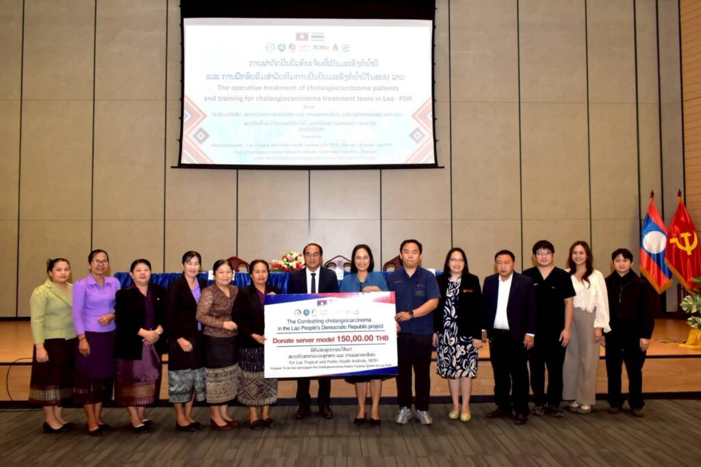 สถาบันวิจัยมะเร็งท่อน้ำดี มข. ผนึกกำลัง Lao TPHI โรงพยาบาลมโหสถ สะหวันนะเขต และจำปาสัก เดินหน้าโครงการ Combatting Cholangiocarcinoma in the Lao PDR ถ่ายทอดองค์ความรู้ ผ่าตัดรักษาผู้ป่วยจริง พร้อมมอบระบบฐานข้อมูลกลาง ยกระดับการดูแลผู้ป่วยมะเร็งท่อน้ำดีใน สปป.ลาว อย่างยั่งยืน