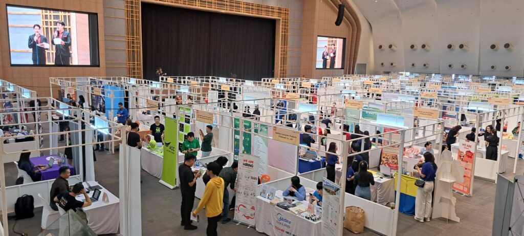 🎓 ขอเชิญนักศึกษาทุกมหาวิทยาลัย และบุคคลทั่วไป ที่กำลังหางานประจำ งานพาร์ทไทม์ หรือมองหาที่ฝึกงาน มาพบกับบูทบริษัทชั้นนำมากมายจากหลากหลายอุตสาหกรรม เช่น CP All, CPF, ธนาคารกรุงเทพ, UNIQLO,  ThaiBev, Central, คอมเซเว่น, ขอนแก่นแหอวน, ขอนแก่น บริวเวอรี่ และอีกมากมายกว่า 100 บริษัท รวมตำแหน่งงานกว่า 10,000 อัตรา