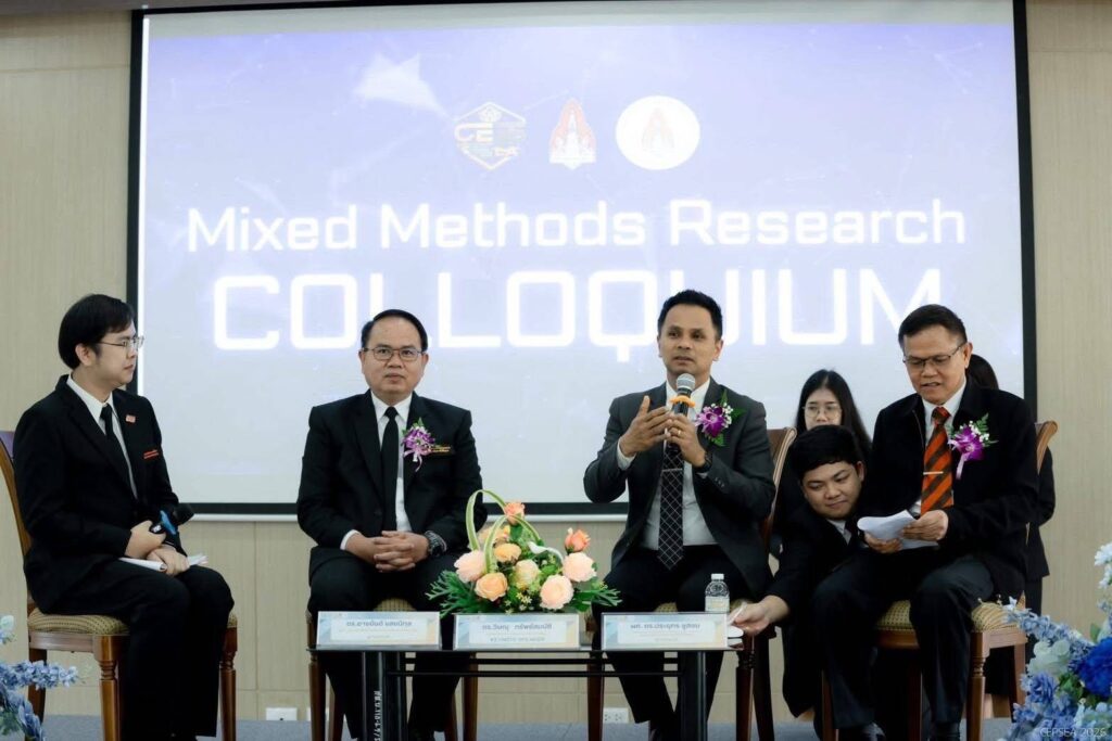 ภายในงานยังมีกิจกรรม Mixed Methods Research Colloquium ของนักศึกษาระดับปริญญาโท สาขาวิชาการบริหารการศึกษา รุ่นที่ 43 ซึ่งเปิดเวทีให้นักศึกษาได้นำเสนอและแลกเปลี่ยนความคิดเห็นด้านงานวิจัย โดยมีคณะผู้ทรงคุณวุฒิร่วมวิพากษ์และให้ข้อเสนอแนะ อาทิ ผศ.ดร.ยุวธิดา ชาปัญญา ผศ.ดร.ประยุทธ ชูสอน ดร.อาคม อึ่งพวง และ ผศ.ดร.สิทธิชัย สอนสุภี เพื่อเสริมสร้างมุมมองเชิงวิชาการ และต่อยอดการพัฒนางานวิจัยสู่การนำไปใช้ประโยชน์ในการบริหารและพัฒนาการศึกษาอย่างเป็นรูปธรรมต่อไป.