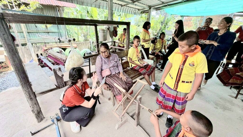ภายในกิจกรรม นักเรียนได้เรียนรู้ตั้งแต่การทำความรู้จักเส้นไหม กระบวนการทอผ้าไหม ไปจนถึงการถ่ายทอดภูมิปัญญาจากปราชญ์ชาวบ้าน เพื่อเสริมสร้างความเข้าใจเกี่ยวกับคุณค่าและเอกลักษณ์ของผ้าไหมไทย พร้อมพัฒนาเยาวชนให้เป็น “มัคคุเทศก์น้อย” ของชุมชน ที่สามารถนำความรู้เกี่ยวกับผ้าไหมไปใช้ในการต้อนรับและให้ข้อมูลแก่ผู้มาเยี่ยมชมหมู่บ้านในอนาคต