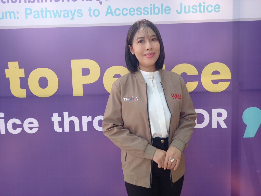 อาจารย์กัญญารัตน์ โคตรภูเขียว ผู้อำนวยการศูนย์วิจัยทางกฎหมายและบริการวิชาการ คณะนิติศาสตร์ มหาวิทยาลัยขอนแก่น กล่าวว่า ความร่วมมือกับ THAC จะช่วยเสริมสร้างหลักสูตร การอบรม และคลินิกด้านการระงับข้อพิพาท เพื่อให้นักศึกษาได้เรียนรู้จากผู้เชี่ยวชาญและนำไปใช้จริง รวมถึงต่อยอดงานวิจัยและบริการวิชาการเพื่อสังคม
