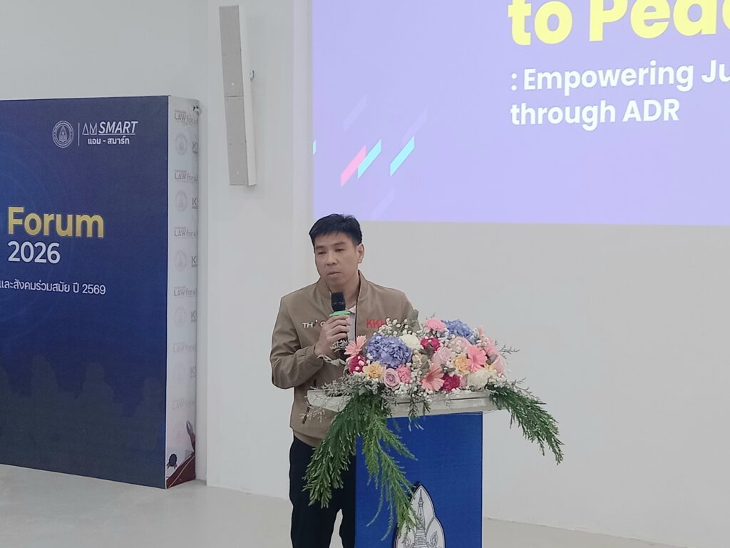 ด้านผู้ช่วยศาสตราจารย์กิตติบดี ใยพูล หัวหน้าสาขาวิชานิติศาสตร์ กล่าวเพิ่มเติมว่า เวทีเสวนาครั้งนี้สะท้อนการเปลี่ยนผ่านของระบบกฎหมายจากการพึ่งพากระบวนการศาลแบบดั้งเดิม ไปสู่กลไก ADR ที่มีความยืดหยุ่นและตอบโจทย์สังคมยุคใหม่มากขึ้น