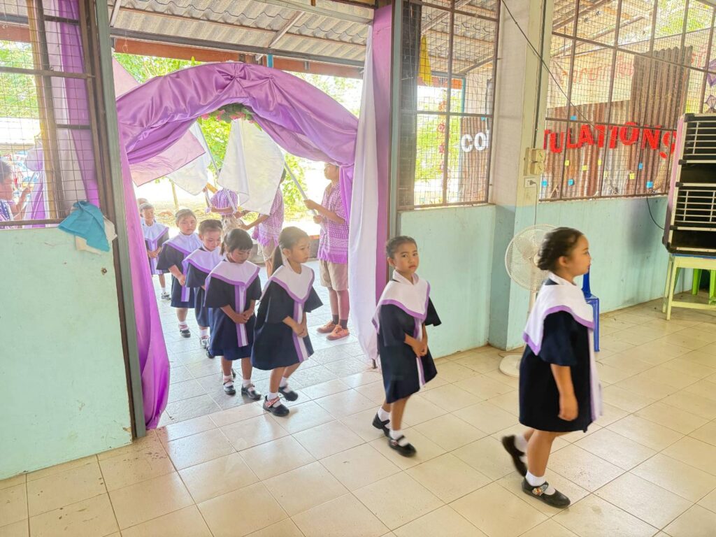 ดร.ศิริวัฒนา ต่อนี อำนวยการโรงเรียนบ้านม่วง เปิดเผยว่า งานดังกล่าวเป็นเวทีสำคัญที่เปิดโอกาสให้นักเรียนได้แสดงศักยภาพทางวิชาการและทักษะอาชีพ ควบคู่กับการสร้างความภาคภูมิใจให้แก่ผู้สำเร็จการศึกษาในปีการศึกษา 2568 จำนวนรวม 80 คน แบ่งเป็น ระดับอนุบาล 22 คน ระดับประถมศึกษาปีที่ 6 จำนวน 33 คน และระดับมัธยมศึกษาปีที่ 3