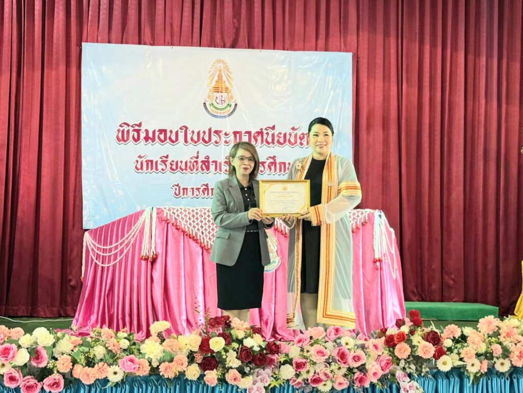 เมื่อเวลา 09.30 น. วันที่ 27 มีนาคม 2569 ที่หอประชุมอเนกประสงค์โรงเรียนบ้านม่วง ตำบลบ้านทุ่ม อำเภอเมือง จังหวัดขอนแก่น ดร.กมลวรรณ ทิพยเนตร รองผู้อำนวยการสำนักงานเขตพื้นที่การศึกษาประถมศึกษาขอนแก่น เขต 1 เป็นประธานในพิธีมอบใบประกาศนียบัตร และเปิดงาน “ตลาดนัดวิชาการและทักษะอาชีพ” ภายใต้กิจกรรม “200 วันมหัศจรรย์ม่วง-ขาว” ประจำปีการศึกษา 2568