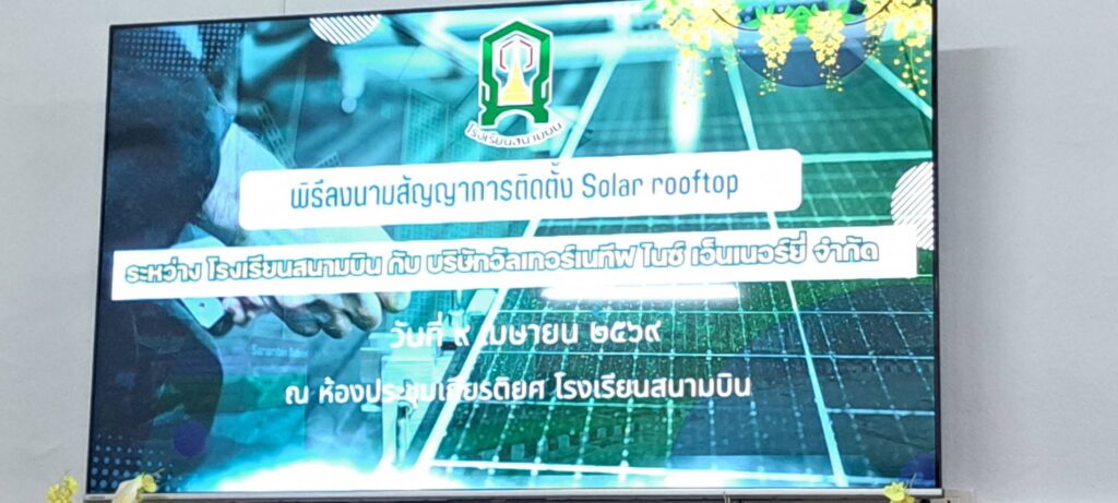 โรงเรียนสนามบิน จังหวัดขอนแก่น จับมือบริษัทเอกชน ลงนามสัญญาติดตั้งโซล่ารูฟ ผลักดันพลังงานสะอาด ลดภาระค่าใช้จ่ายระยะยาว พร้อมนำงบประมาณที่ประหยัดได้พัฒนาคุณภาพการศึกษา